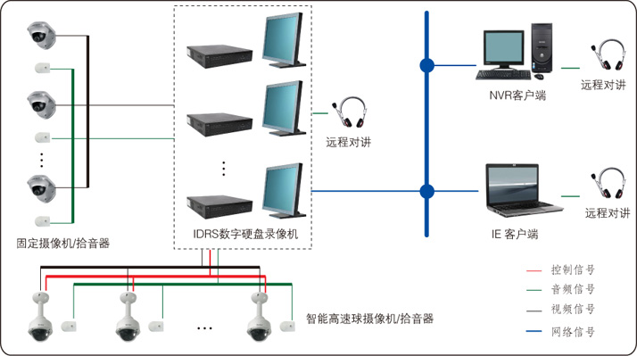 2. 一切監(jiān)控信號(hào)全部經(jīng)過(guò)視頻線纜集中傳送到學(xué)校監(jiān)控中心,接入數(shù)字硬盤錄像主機(jī),即可停止監(jiān)看、云鏡控制、錄像存儲(chǔ)、網(wǎng)絡(luò)傳輸?shù)炔僮鳌?